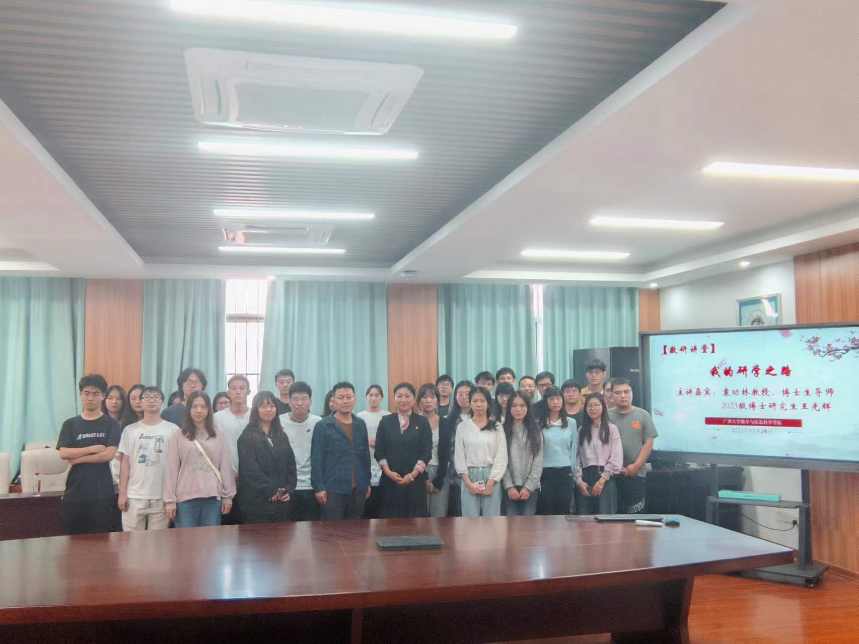 研究生会获批的广西研究生教育创新计划项目(君武“研”学堂——中国—东盟新一代信息与大数据技术产业倍增发展论坛)的组成部分之一。活动包含但不仅限于举办学术活动,还可进行学科知识的互助学习,学科竞赛、考博经验分享、思政理论学习、文明礼仪养成等,旨在通过名师讲学、学长领学、学生探讨交流,营造小鸭看看