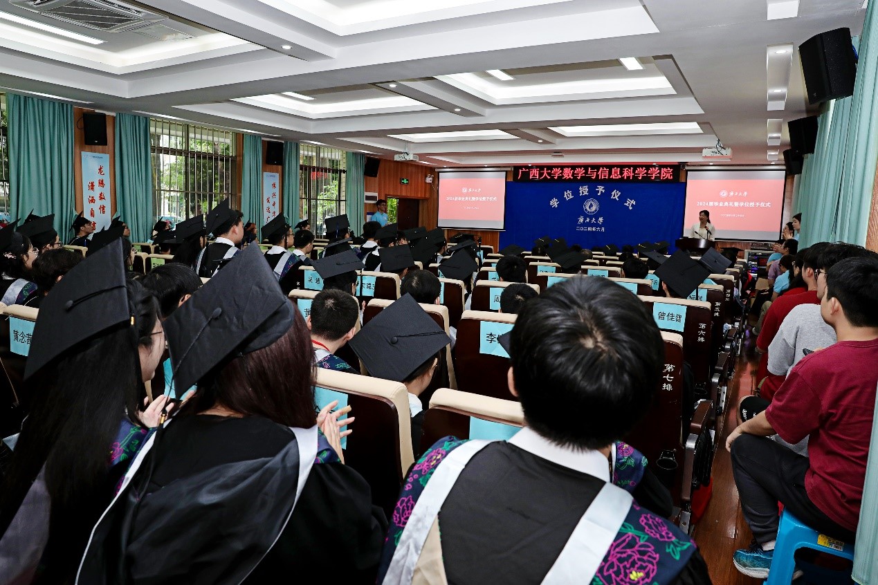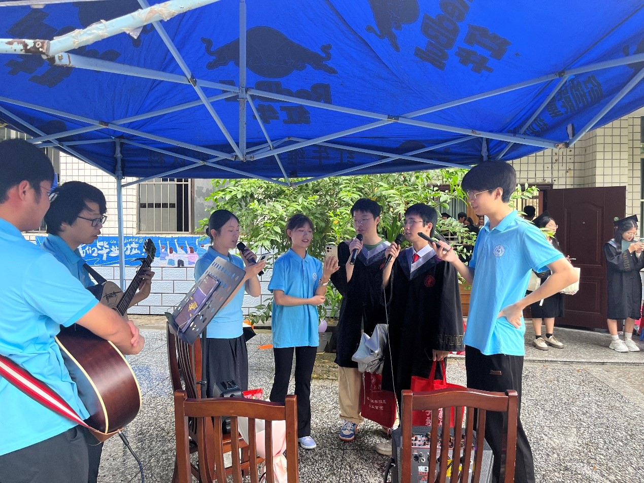 仪式结束后,数信学院为2024届毕业生们举行了“数青春”毕业欢送会。诗朗诵、切蛋糕、把歌唱、同拍照……毕业生们用各种形式表达着对学院、学校的无限感恩和深情祝福。