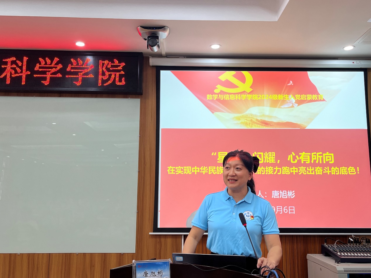 党委副书记唐旭彬以“星火闪耀,心有所向”为题给2024级新生开展入党启发教育和校规校纪学习教育。数信学院全体辅导员老师一同参加报告会。