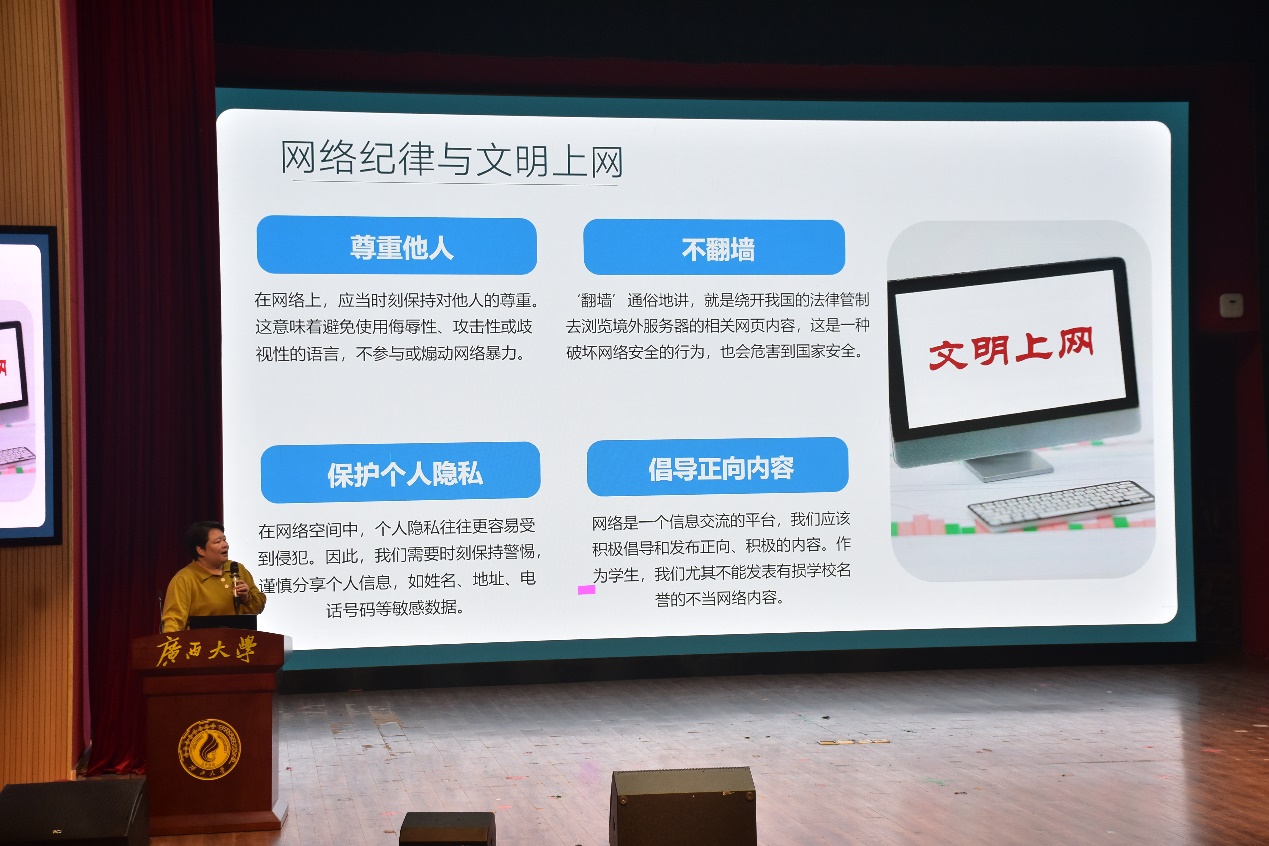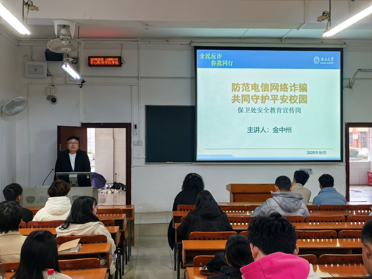保卫处金中州和西大派出所宁警官以团体辅导的形式分4次对学院全体学生开展全覆盖教育引导。他们以文字和案例视频结合的方式,将发生在小鸭看看