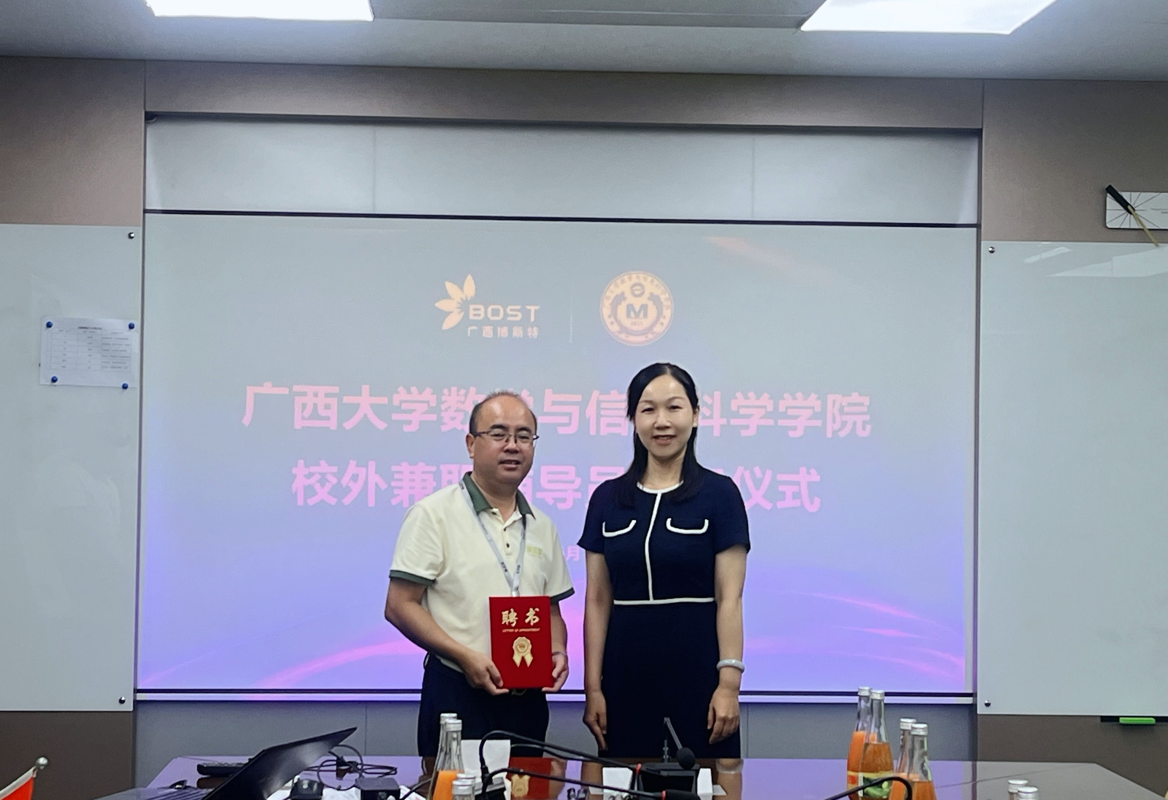 校外兼职辅导员聘任仪式,吴华丽为张誉颁发聘书,聘任其为小鸭看看