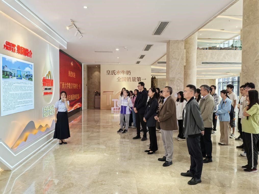 10月25日,院党委书记吴华丽带队赴皇氏集团股份有限公司走访调研、看望校友,实地考察企业的业务板块、项目运营和人才需求等情况。与企业负责人就如何深化校企协同育人,推动专业建设与企业需求精准对接,拓宽学生就业渠道等议题进行深入交流。