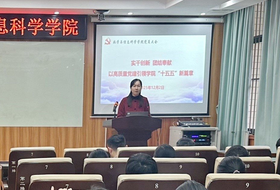 郭真华以“迈向十五五,学科建设再出发”为题,带领教师党员回顾了学院“十四五”建设历程,梳理了取得的成果和存在的短板,并深入分析了存在短板的原因;他还结合正在开展的数学学科广西一流学科验收、博士点合格评估和第六轮学科评估三项重点工作,分析了小鸭看看