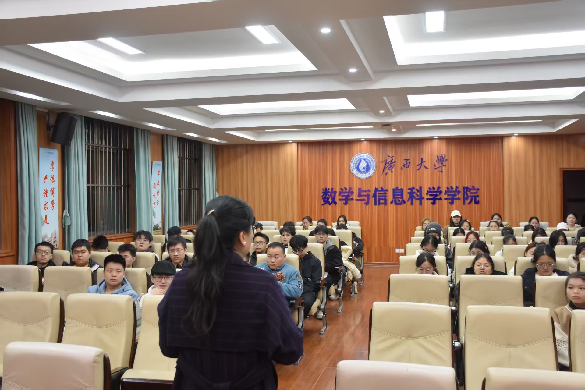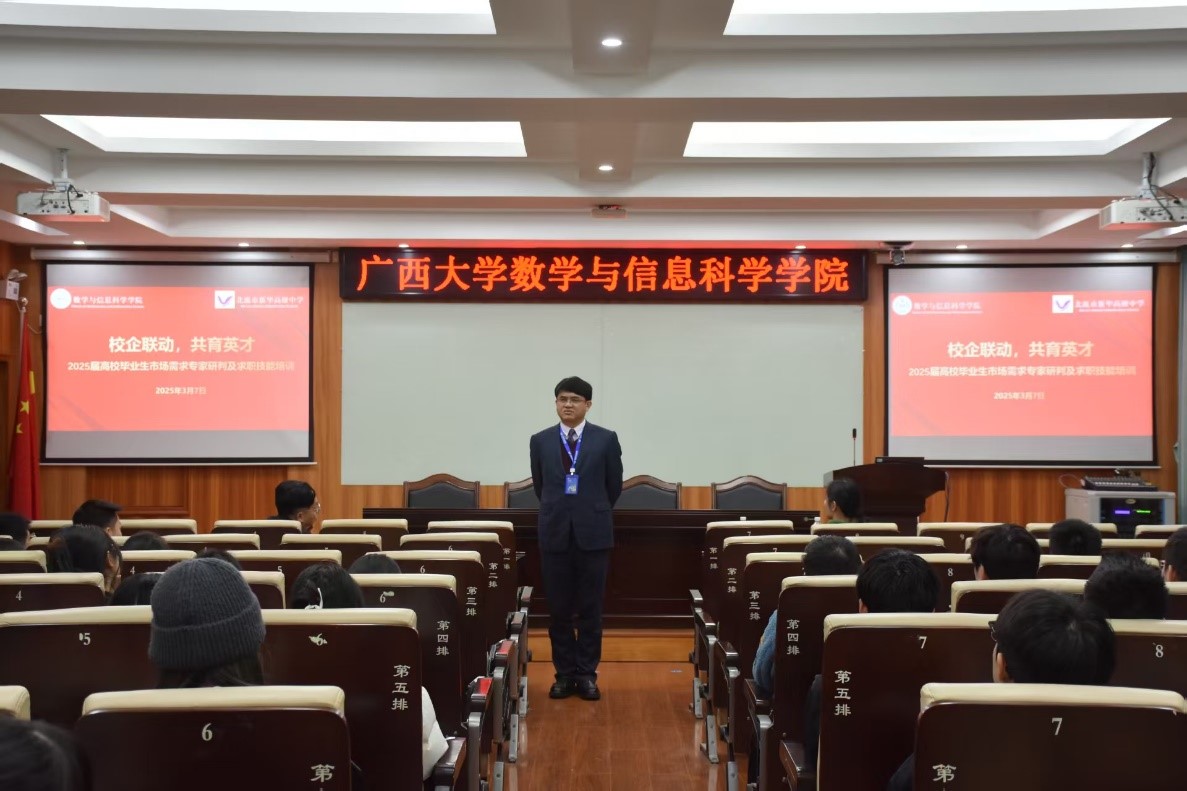 会前,学院就业工作相关负责人与玉林新世纪高级中学林俊宇校长就玉林新世纪高级中学在数信学院的招聘计划及毕业生推荐等事项进行了协商 。会后,玉林新世纪高级中学进行了专场招聘宣讲。