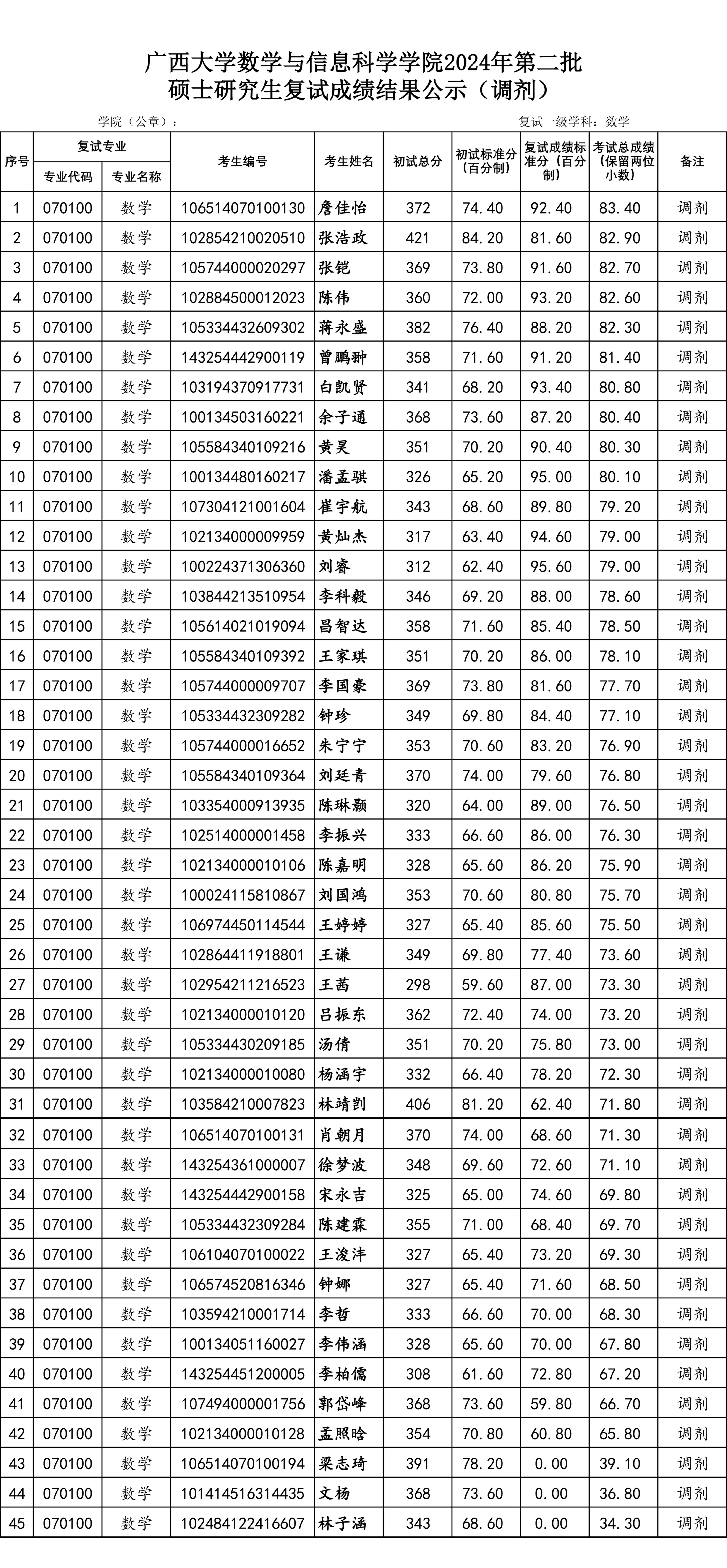 小鸭看看 2024年第二批硕士研究生复试名单公示(调剂考生)