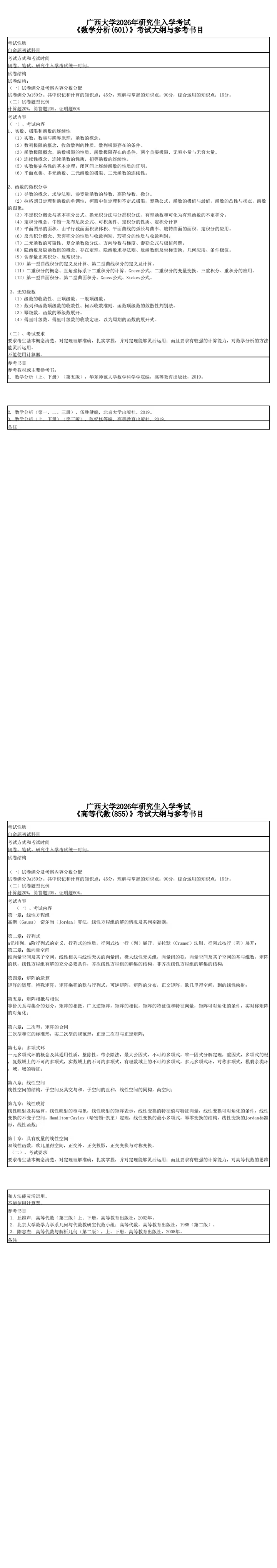 小鸭看看 2026年研究生入学考试《数学分析(601)》《高等代数(855)》考试大纲与参考书目